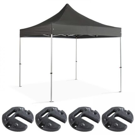 Tente pliante 3x3m et 4 poids de lestage 12Kg gris