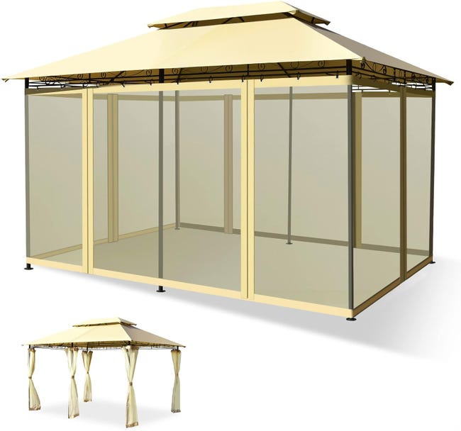 - Moustiquaires Pratiques : Les parois latérales de notre tonnelle sont équipées de moustiquaires amovibles à fermeture éclair, qui peut être installée ou retirée selon vos besoins. De plus, notre tonnelle de jardin dispose d’anneaux de suspension sur le cadre supérieur, qui vous permettent de tirer les moustiquaires pour une utilisation facile.